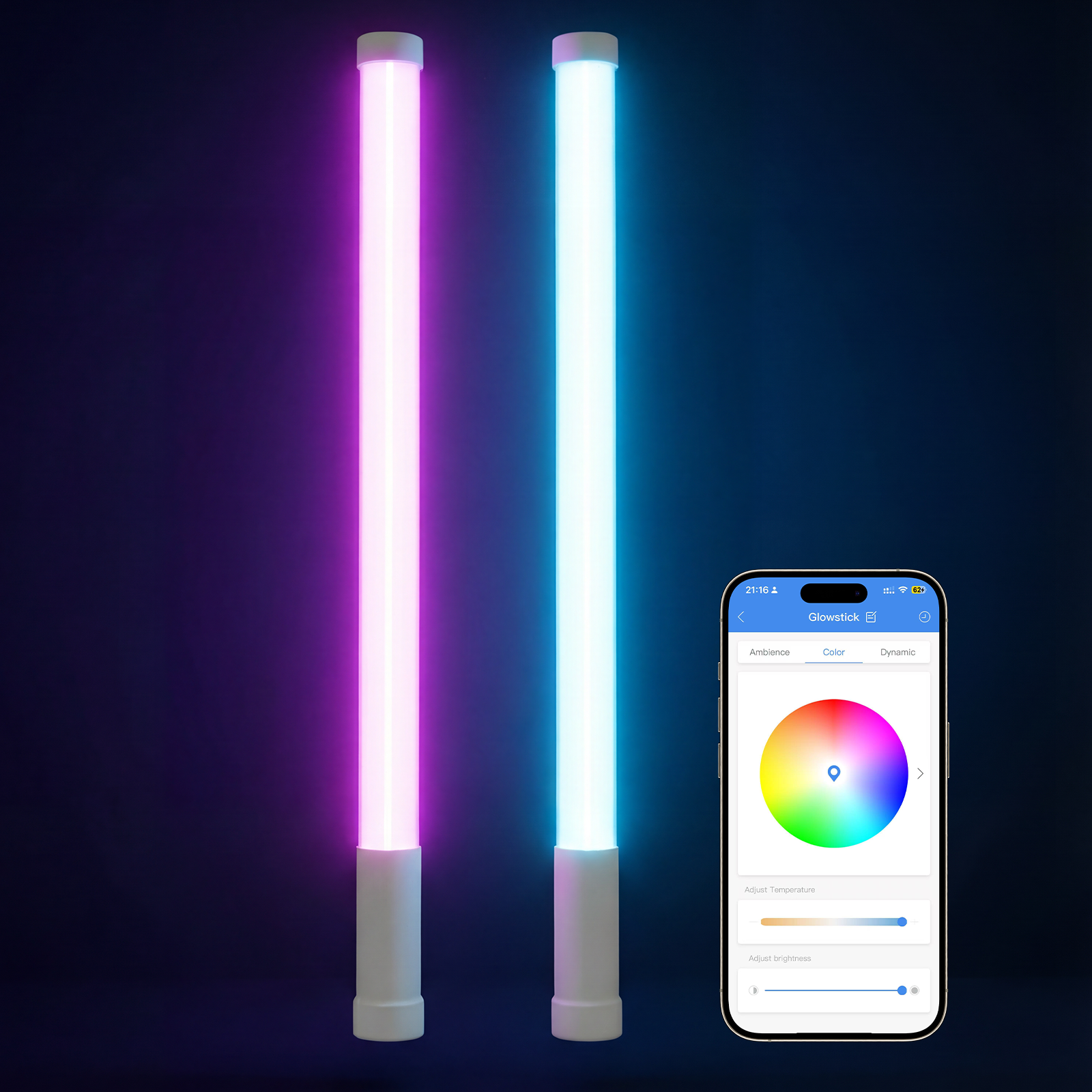 The TakThree Smart LED Glow Sticks are reusable, rechargeable light wands designed for events, parties, and outdoor activities. Each 17-inch glow stick features full RGBCW color output, adjustable brightness, and multiple lighting modes.
